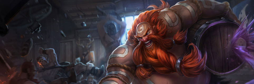 古拉加斯拋出他的酒桶。酒桶在著陸后會爆炸,對命中的敵人造成200/300/400(+0.7)魔法傷害,并且將他們從爆炸中震開。